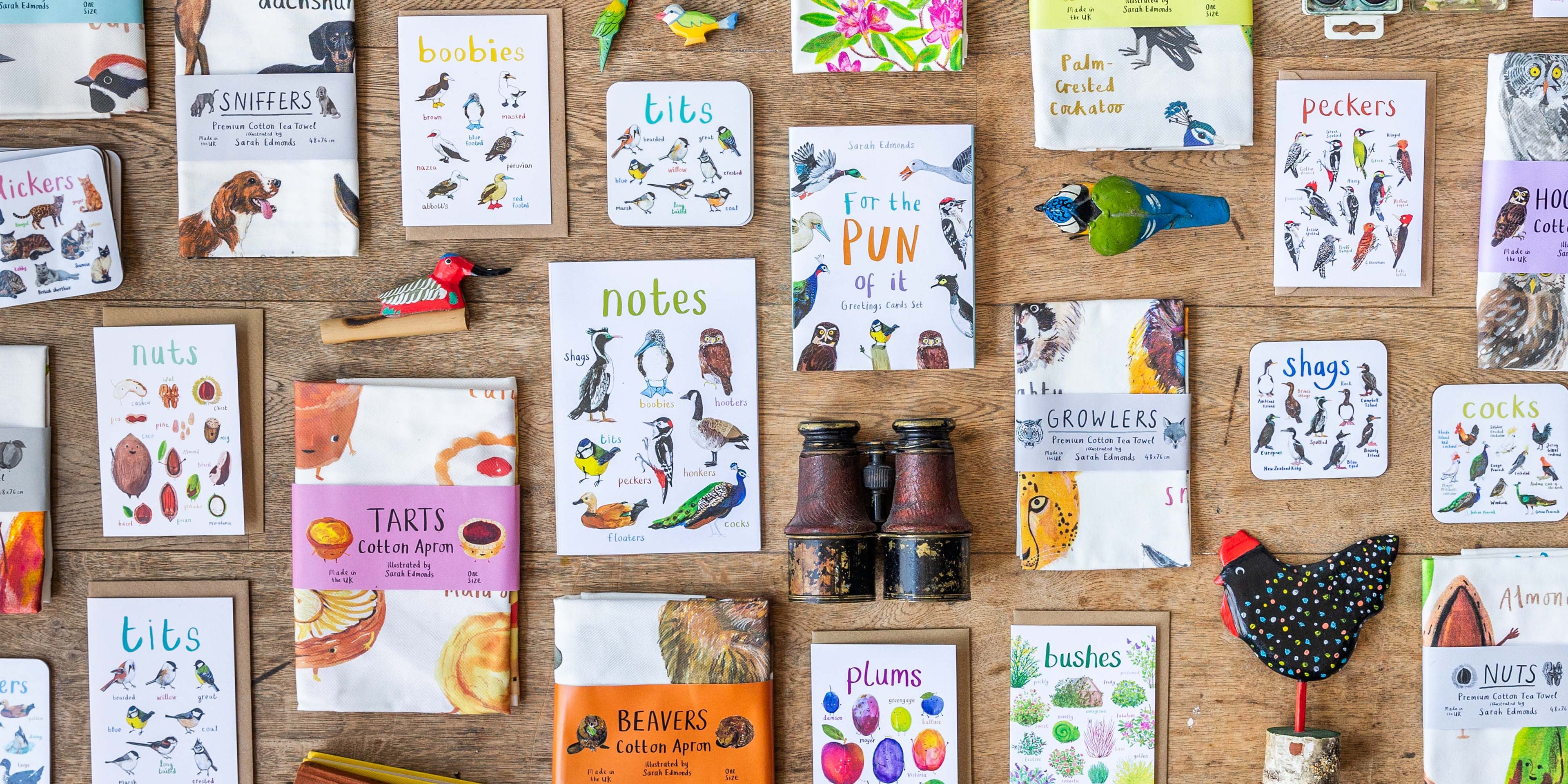 Please scroll down to see the range and explore our designs and products using the menu above. All products are illustrated by Sarah Edmonds, made in the UK and designed to raise a smile!