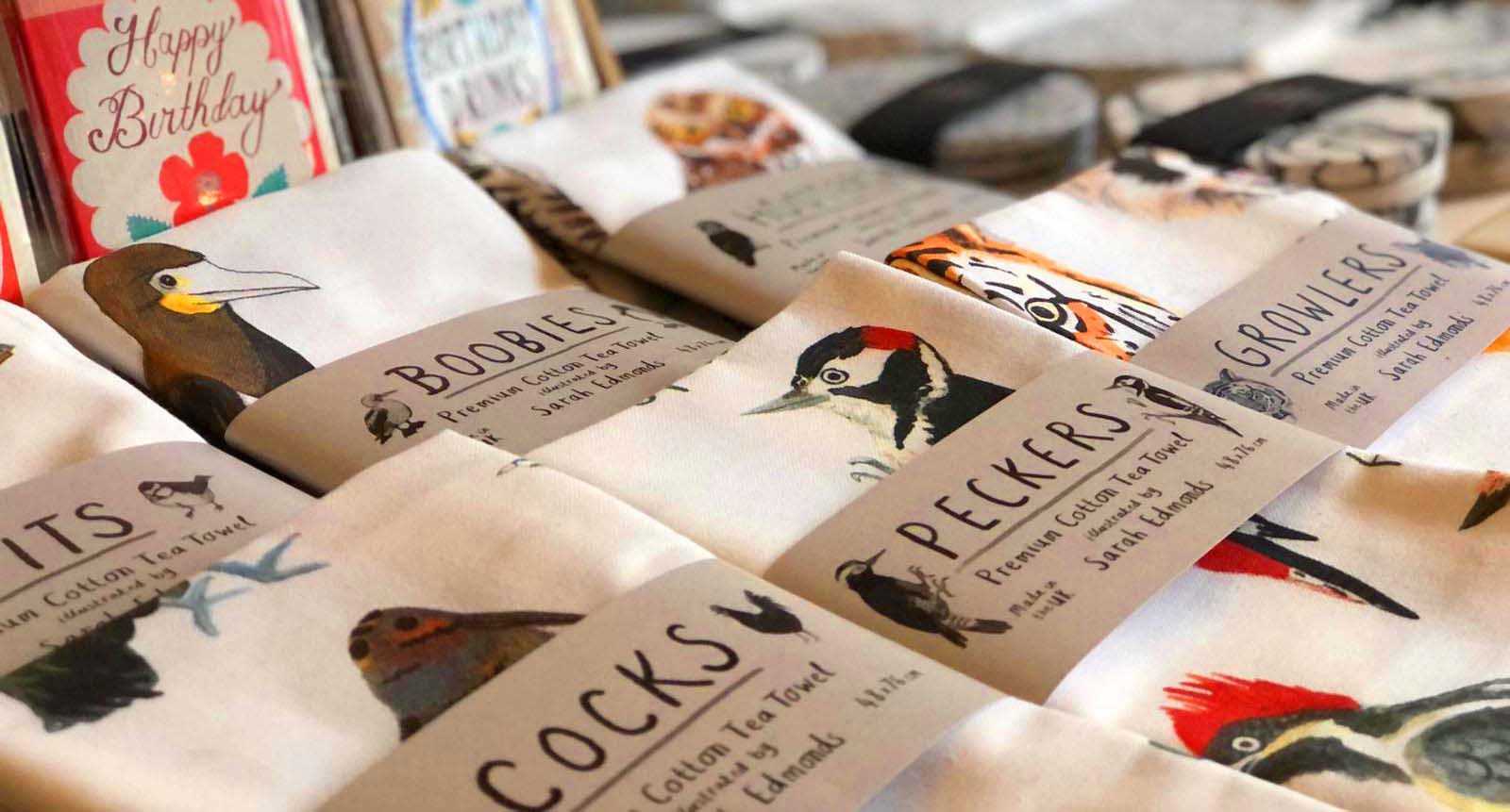 "Sarah’s tea towels and cards are perfect for our nature reserve shop, its always amusing to hear the customers reaction no matter the age, who doesn’t love a good pun? The service we get from Sarah is top notch, we are repeat customers, and we sell out every Christmas without fail."