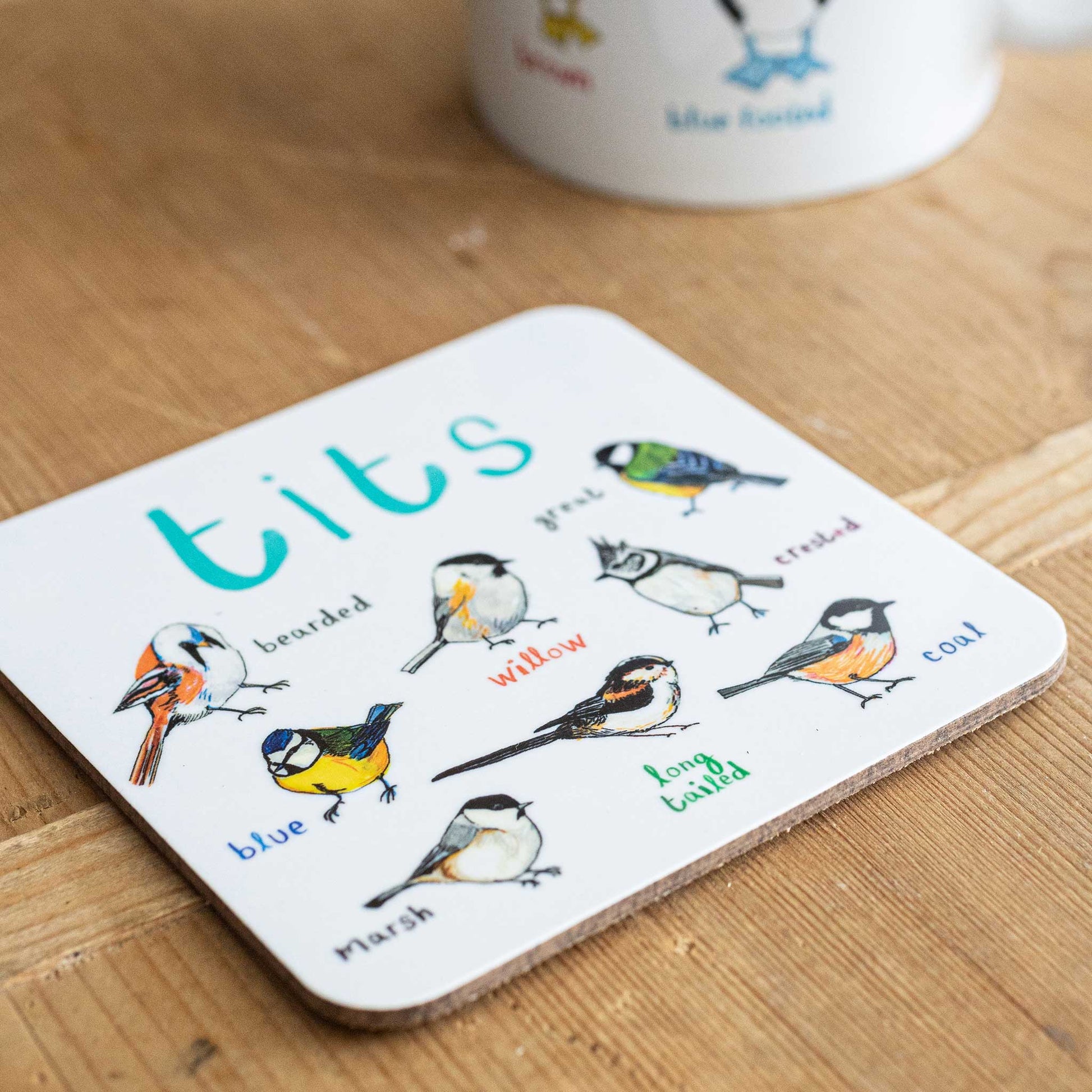 A cheeky coaster featuring the popular ‘Tits’ chart - a fun and useful addition to your work desk or dining room table. Each bird has been hand illustrated with Sarah’s signature typography and the design printed to a very high quality in the UK. An ideal gift for a bird watcher, pun enthusiast or gardener and a great conversation starter! The coaster has a sustainably sourced Eucalyptus board base and a full melamine surface, with cork backing and a gloss finish.