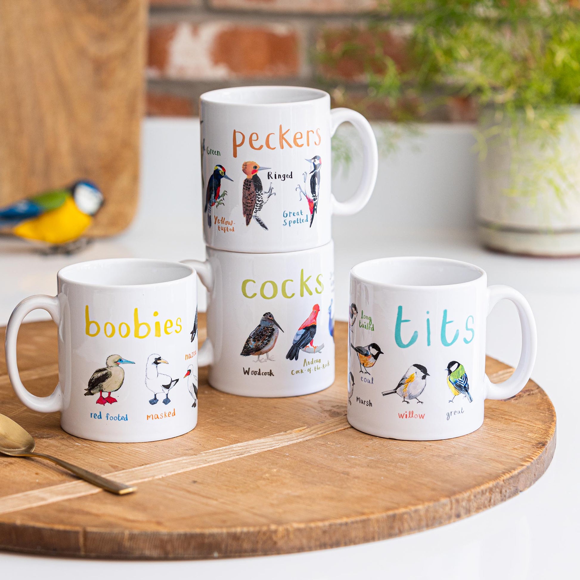 The popular ‘Tits’ design reaches right around the mug with the title featured on each side - perfect for left and right handers alike to enjoy their favourite brew. Each bird has been illustrated by hand and is accompanied with Sarah’s signature typography.